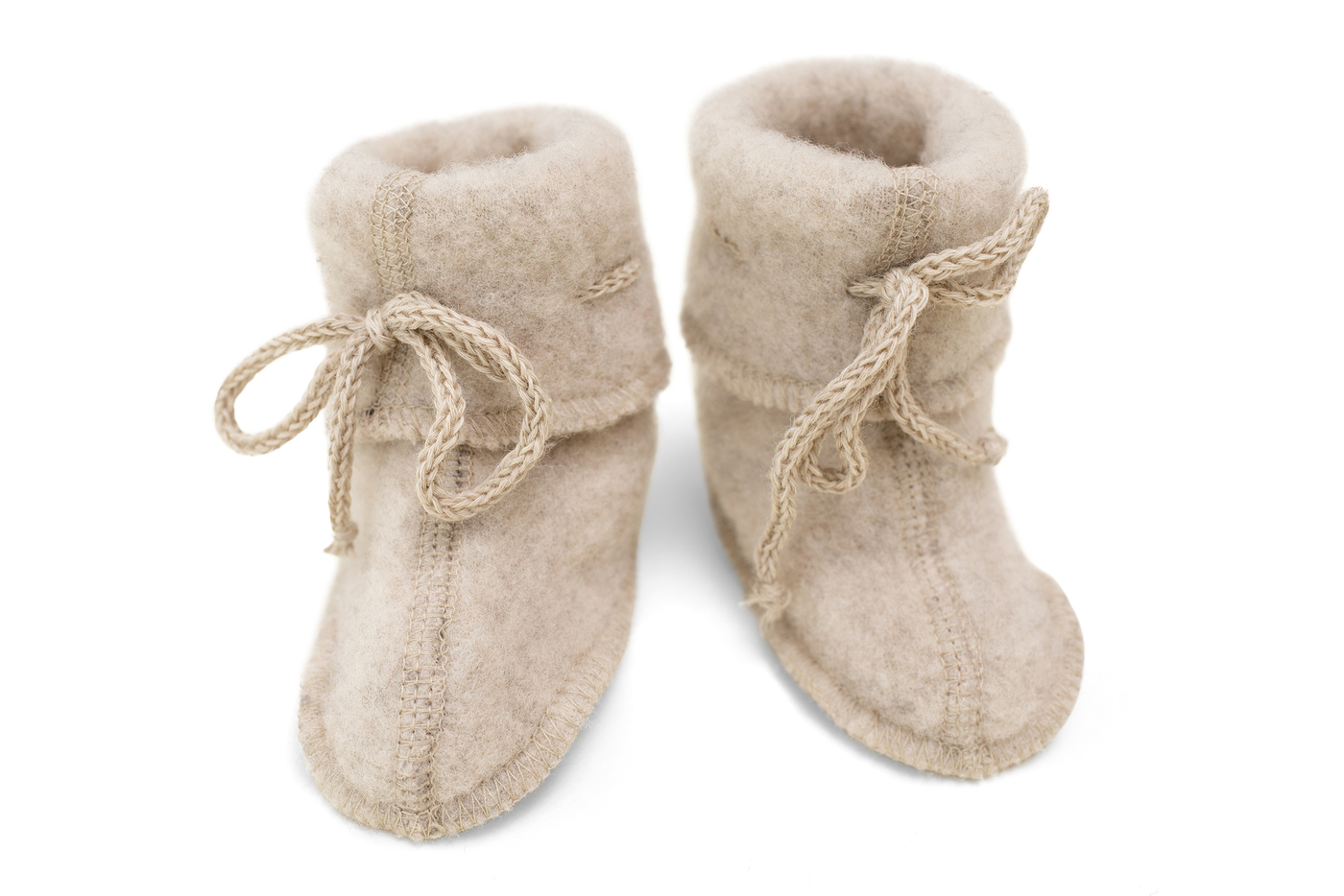 Baby-bootees with ribbon – Sand Melange