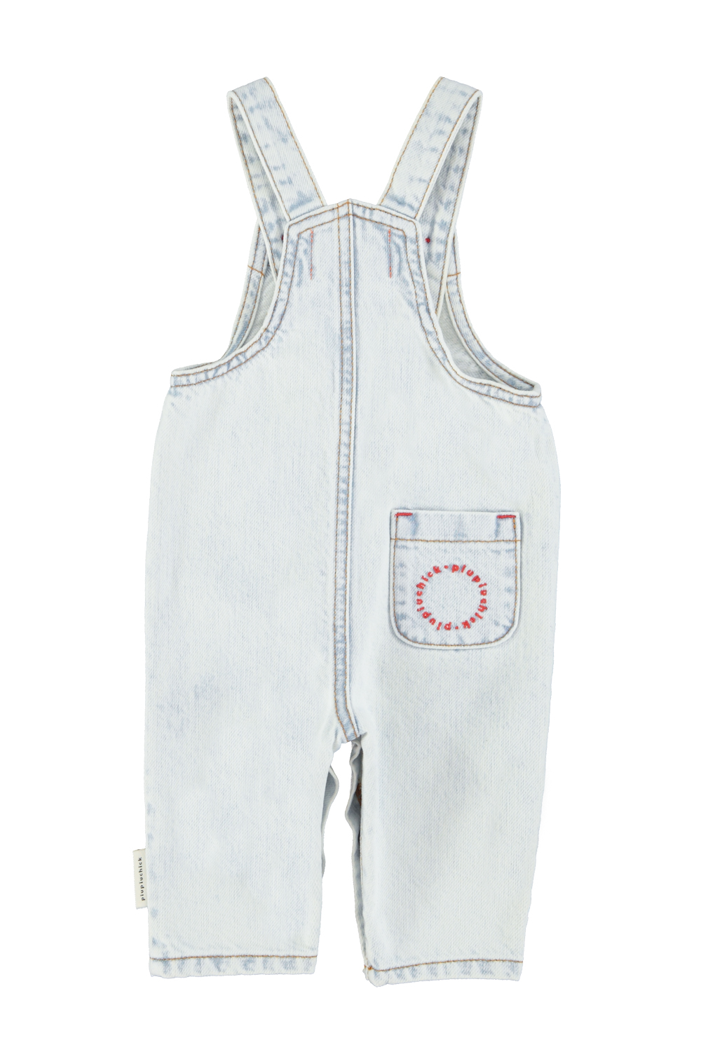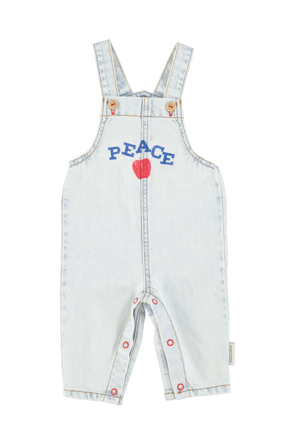 Baby dungarees | washed light blue denim with “peace” print