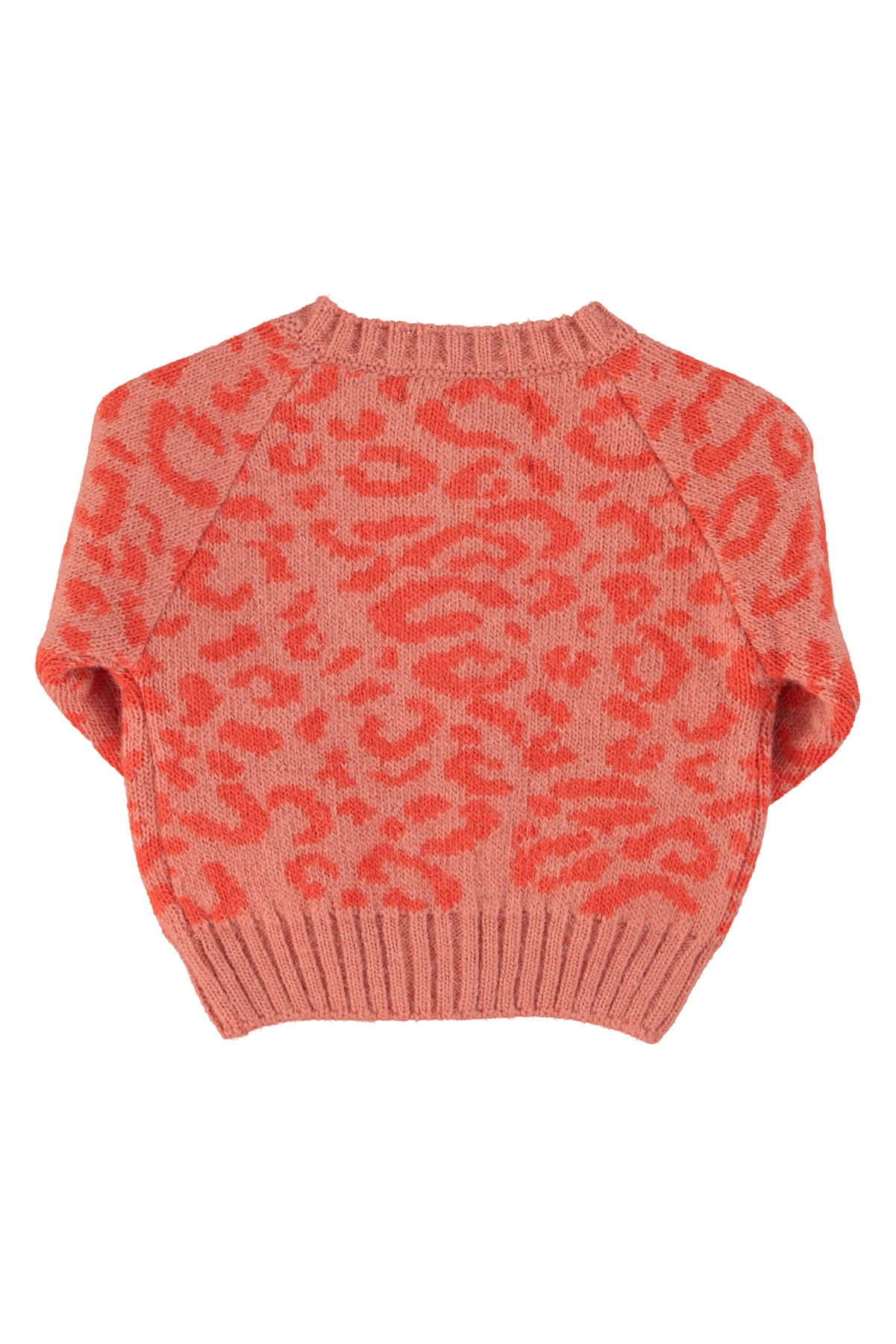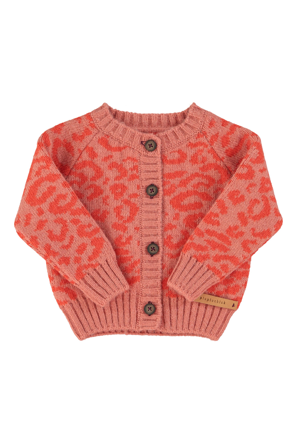 Knitted baby cardigan | Pink w/ animal print